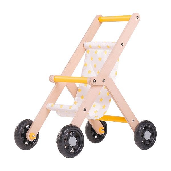 Puppenwagen Holz gelb