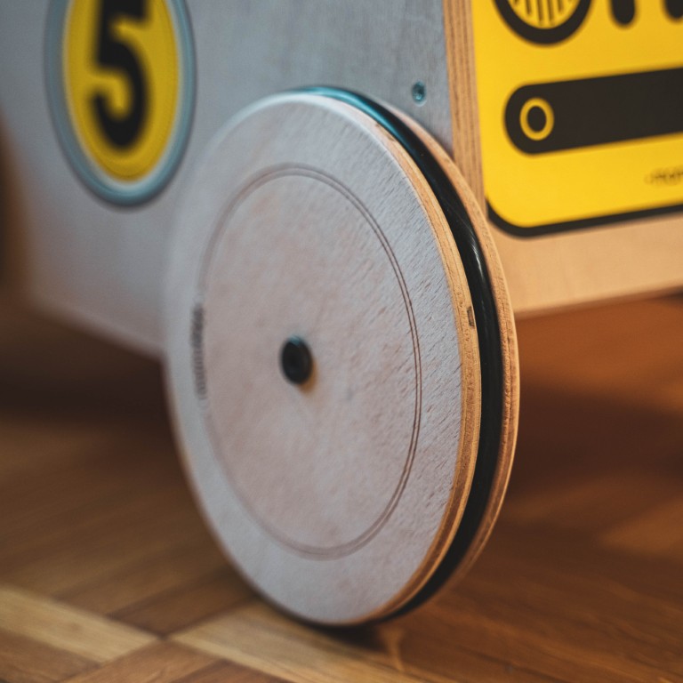Mamatoyz Holz-Spielzeug ist ein pädagogisch wertvolles Spielzeug. Dank der Geschwindigkeitsanpassung an allen 4 Rädern, kann die Geschwindigkeit des racers an die Entwicklung des Kindes angepasst werden.