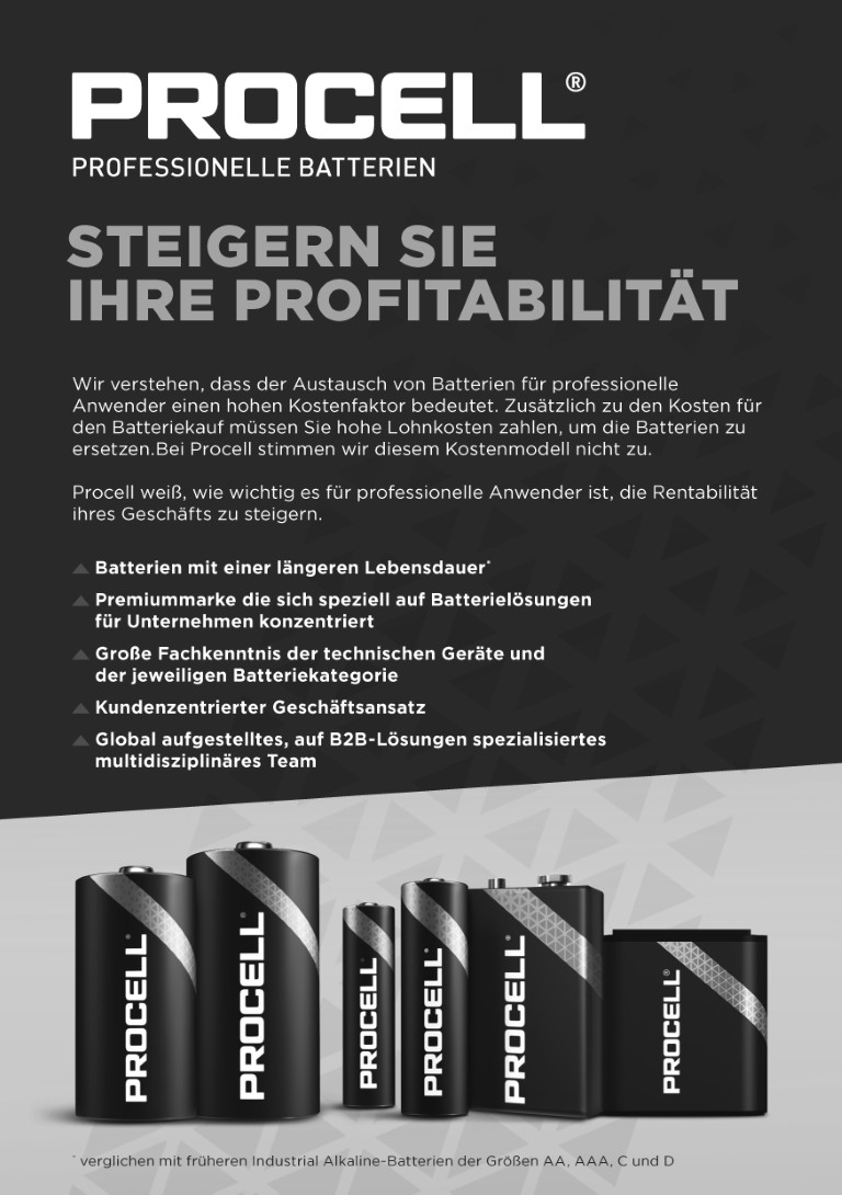 Wird von Herstellern in aller Welt verwendet: Alkaline-Batterien von Procell wurden in Zusammenarbeit mit verschiedenen Herstellern entwickelt, um höchste Performance in professionellen Geräten zu gewährleisten.