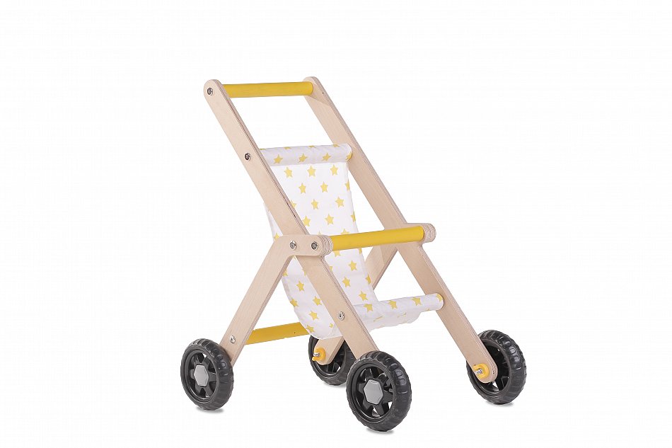 Puppenwagen Holz gelb