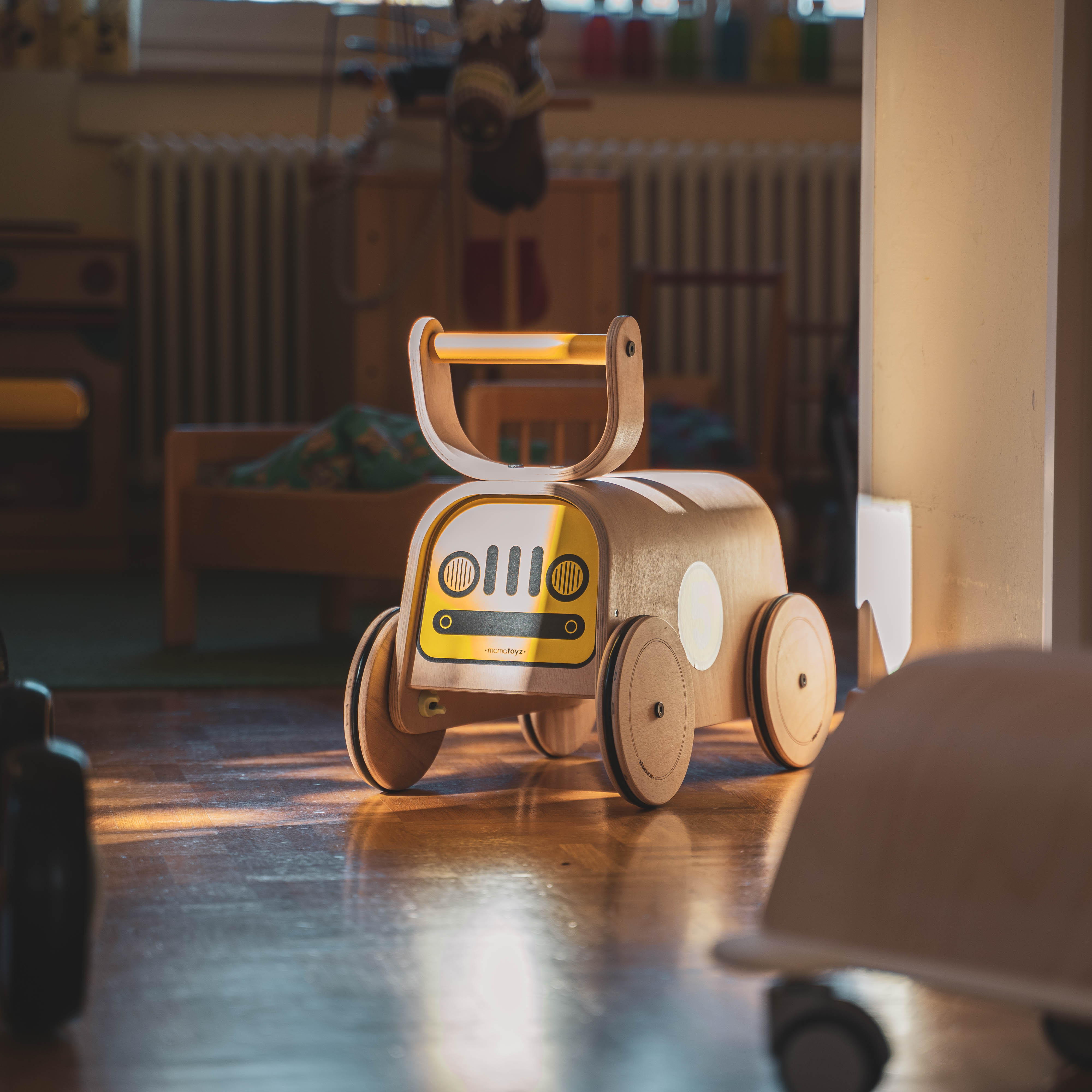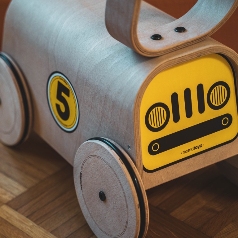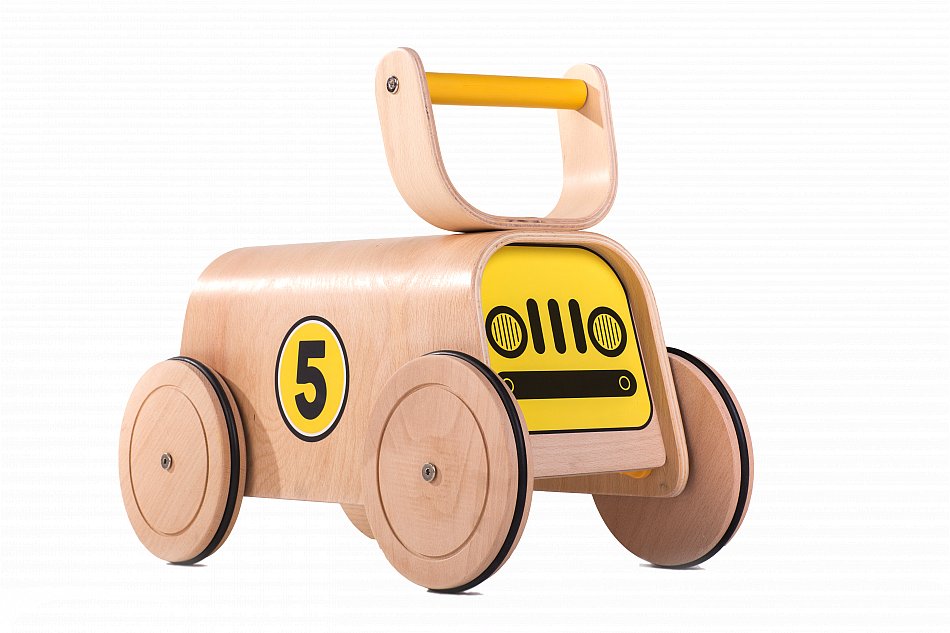 Mamatoyz Holz-Spielzeug ist ein pädagogisch wertvolles Spielzeug. Dank der Geschwindigkeitsanpassung an allen 4 Rädern, kann die Geschwindigkeit des racers an die Entwicklung des Kindes angepasst werden.