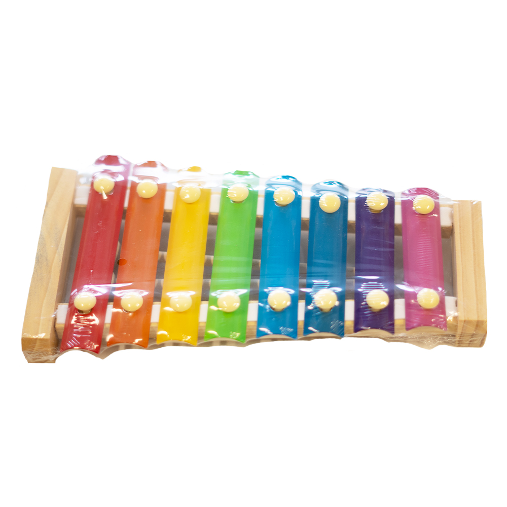 Dieses Xylophon besteht aus acht verschiedenen Metallstücken, wobei jedes Stück Metallstimme anders ist. Insgesamt 8 Noten zu Rot-Do, Orange-Re, Gelb-Mi, Grün-Fa, Hellblau-So, Blau-La, Lila-Si, Rose-Do